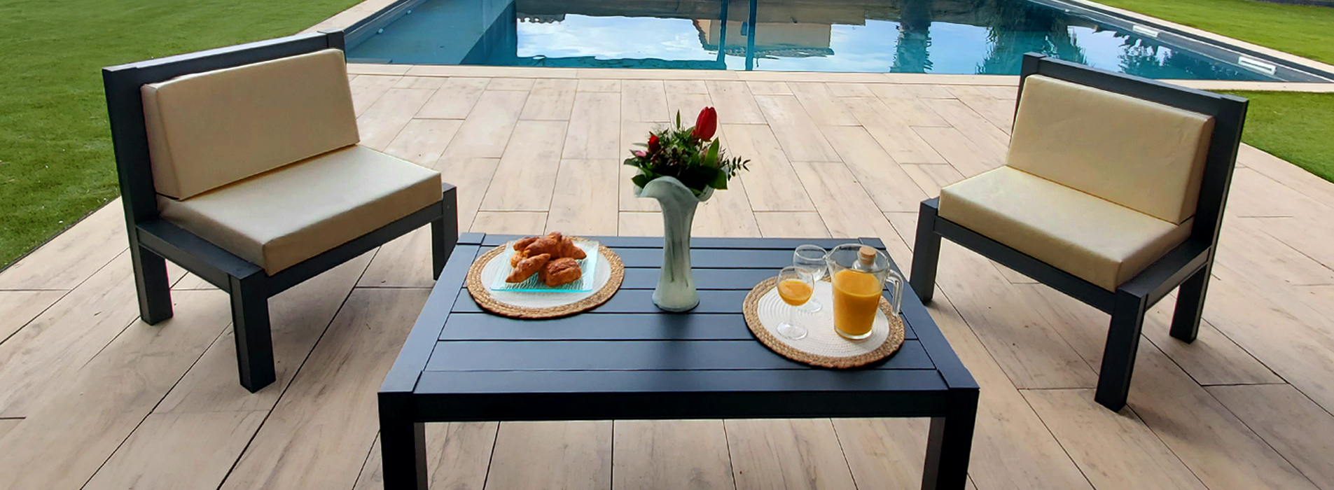 Découvrez notre gamme de mobilier de jardin : du salon bas à la table à manger, en passant par nos compositions complètes avec pergola toile et store banne.